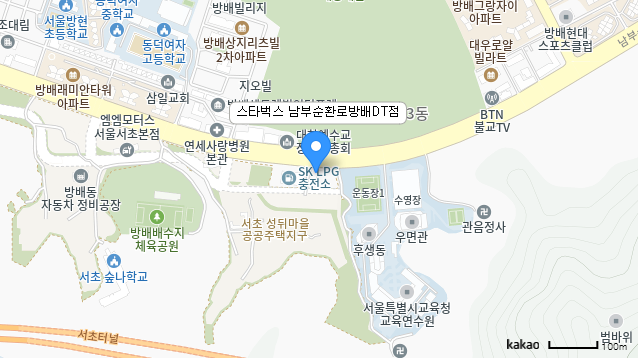 사당역에서 예술의전당 넘어가는 길 한중간에 갑자기 등장하는 스타벅스 남부순환로방배DT점입니다.